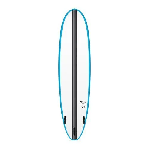 - In der TORQ Epoxy Composite Herstellung werden auf in Deck und Bottom je eine Lage 6oz und 4oz Fiberglas sowie Carbonverstärkungen (im Tail) verarbeitet. Die Unterseite ist im Tailbereich ebenfalls mit Carbon verstärkt und verfügt zusätzlich über einen Carbonstreifen, der sich über die komplette Länge erstreckt und das Board so mit kontrolliertem Flex und lebendiger Response ausstattet.